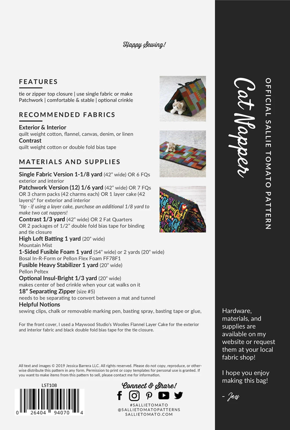 The Cat Napper is a 2-in-1 pattern for cat lovers! Use as a mat or secure the top to use as a tunnel. Choose to secure with ties or a zipper. Also, choose to make with a single fabric or make a patchwork version. This pattern can be made with charm squares, layer cakes, fat quarters, or yardage!