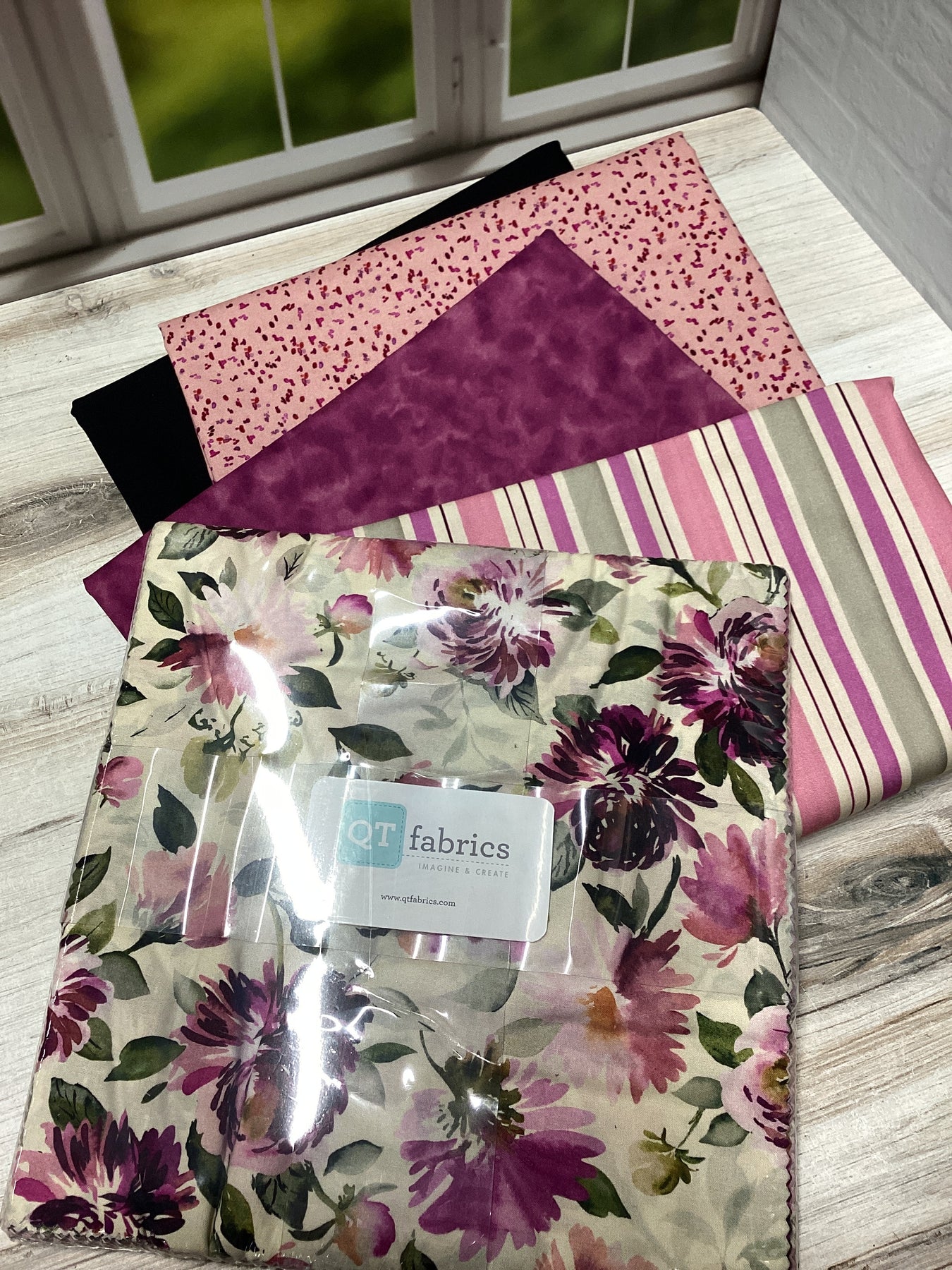 Quilters of all skill levels will enjoy this quick and easy pattern. Farmer’s Square Dance is an easy pattern to kit, using either 12 – 10” squares, 6 Fat Sixths or 1 Yard of a focal print. We love how the quilt showcases focal prints! The pattern is printed in full color with easy-to-follow instructions and graphics. The finished size is 65” x 84.5”.