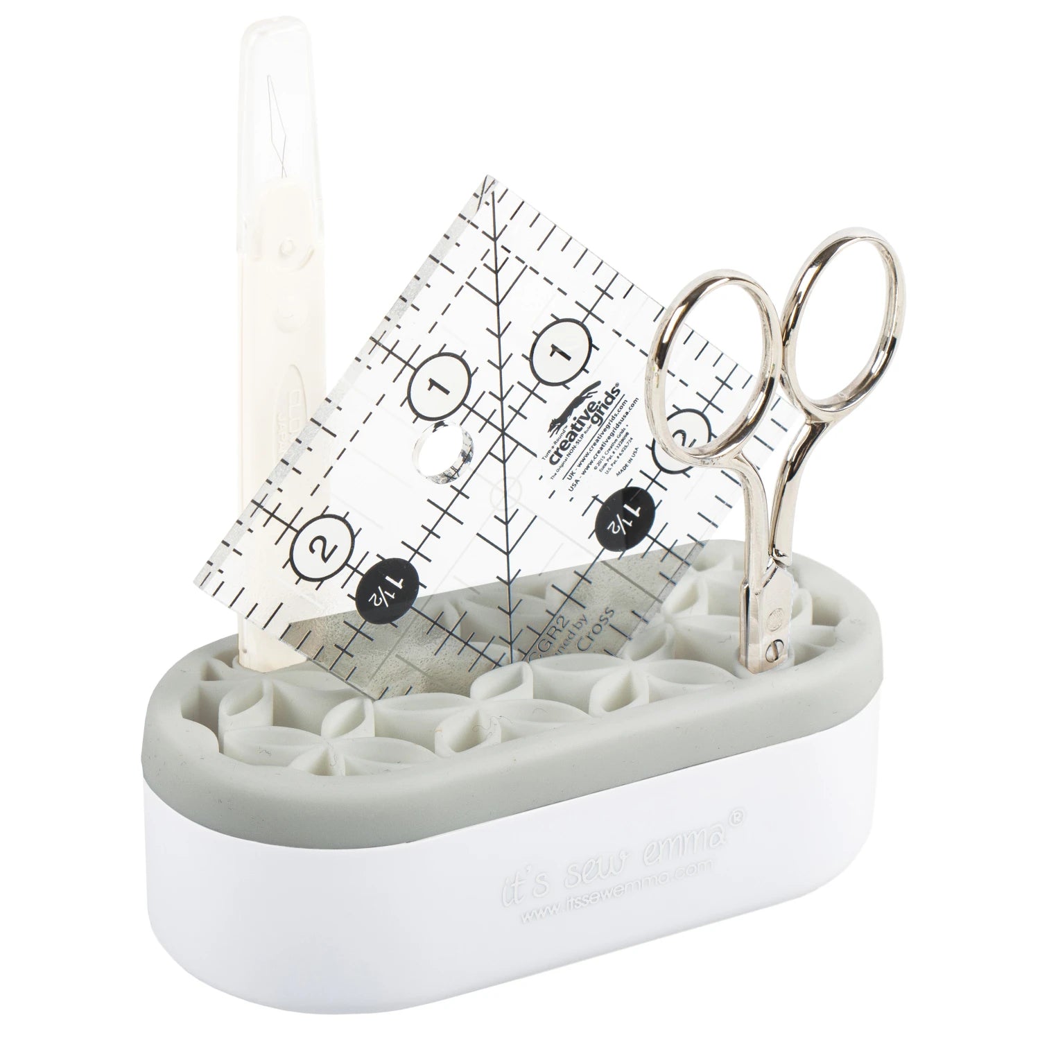 Stash ‘n Store organizer now comes in a sweet new size! The Mini Stash ‘n Store is the perfect organizer for even the tightest and smallest of spaces. With multiple pockets and a center divider, easily stow away sewing notions, marking tools and even small scissors and rulers. It’s the perfect pocket-sized travel companion for stitching on the go! The silicone pockets are smooth and offer a sturdy grip and it is also simple to clean. Available in various colors, collect them all for your sewing room, vanity and home office!